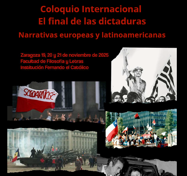 El grupo de investigación Transficción invita a la comunidad universitaria a asistir al Coloquio Internacional "El final de las dictaduras. Narrativas europeas y latinoamericanas" que tendrá lugar los próximos días 19, 20 y 21 de noviembre de 2025 en el Aula Magna de la Facultad de Filosofía y Letras y en la Institución Fernando el Católico.