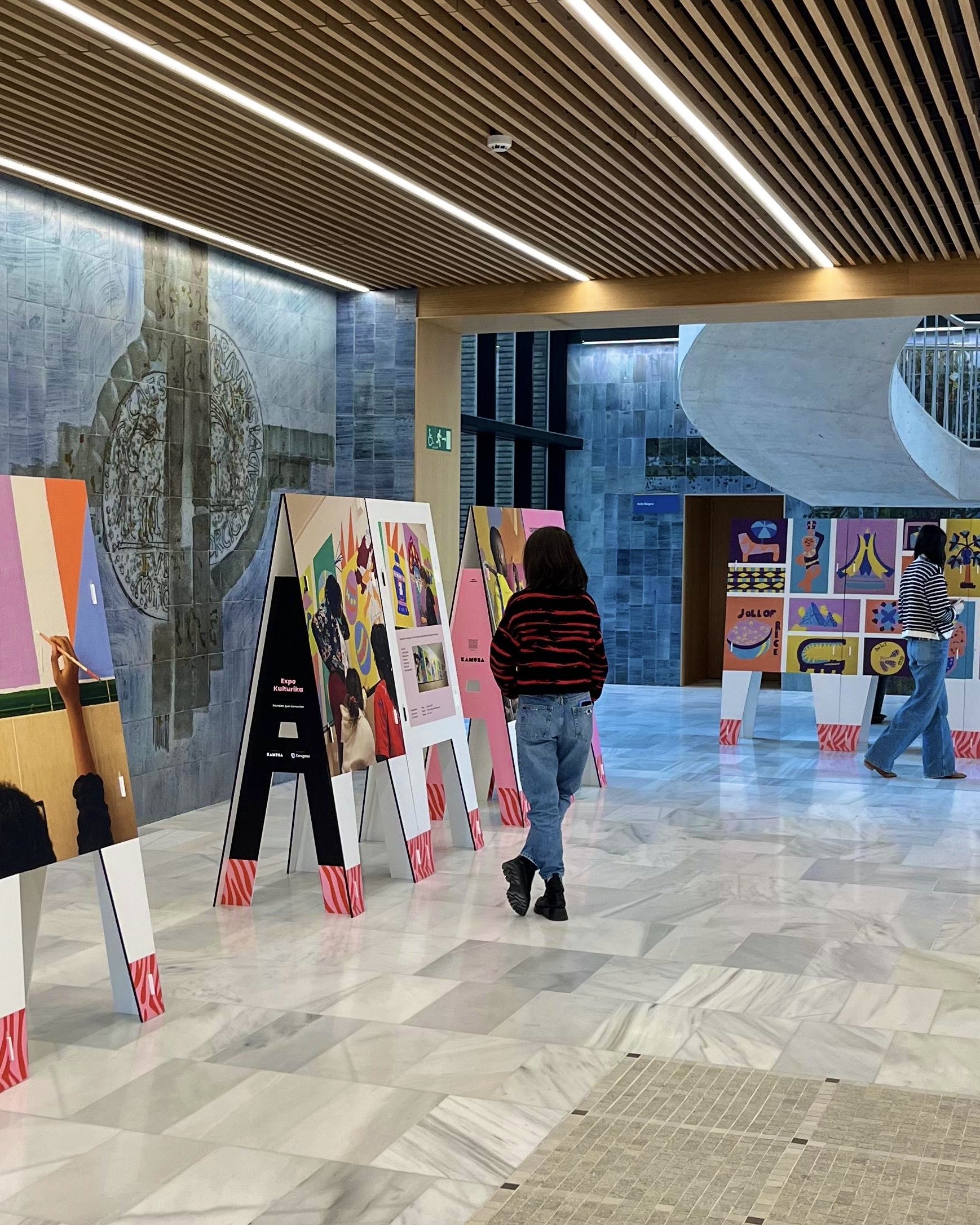 “Expo Kulturika” muestra el proceso creativo y la metodología de Aula Kulturika, un programa ideado por @kamusa.studio que apuesta por la pintura mural como herramienta para generar espacios de acogida, empoderamiento y diálogo intercultural en los centros educativos de #Zaragoza.