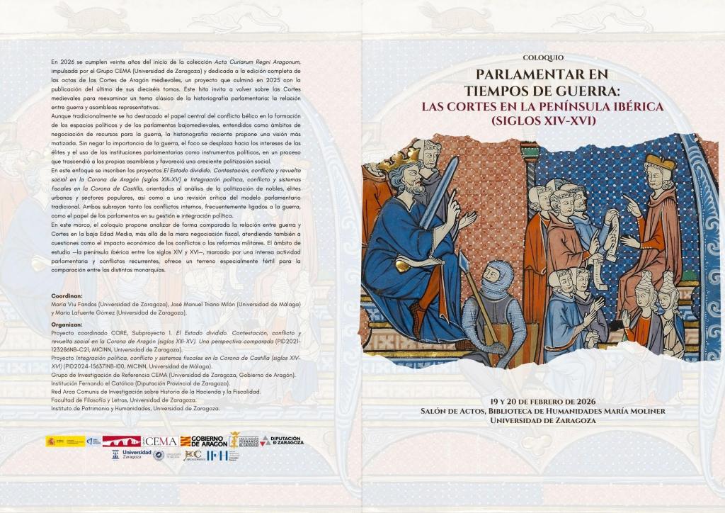 La exposición se enmarca en la iniciativa académica del coloquio internacional “Parlamentar en tiempos de guerra: las Cortes en la península ibérica (siglos XIV–XVI)”, organizado por el Grupo de Investigación de Referencia CEMA (Universidad de Zaragoza).
