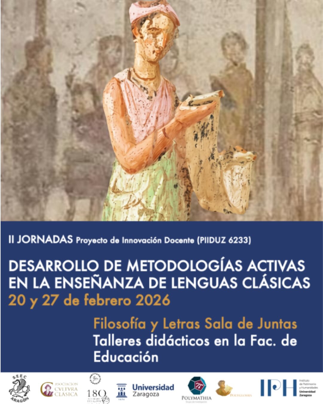 Los días 20 y 27 de febrero, el Departamento de Ciencias de la Antigüedad de la Universidad de Zaragoza organiza las II Jornadas del PIIDUZ 6233, dedicadas a la innovación docente en lenguas clásicas y al desarrollo de metodologías activas aplicadas a la enseñanza del latín y el griego.