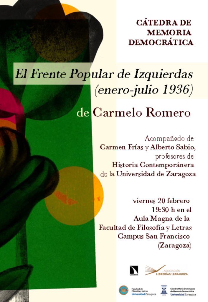 La presentación del libro El Frente Popular de Izquierdas (enero-julio 1936), de Carmelo Romero, tendrá lugar el viernes 20 de febrero, a las 19:30 horas, en el Aula Magna de la Facultad de Filosofía y Letras,