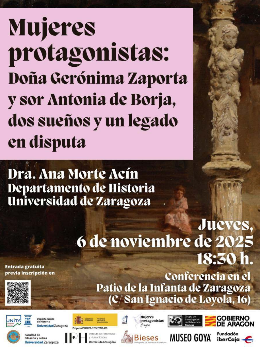 La profesora Ana Morte Acín nos hablará sobre “Doña Gerónima Zaporta y sor Antonia de Borja, dos sueños y un legado en disputa”.